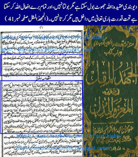 (25) ۔ اللہ تعالیٰ جھوٹ بول سکتا ہے اور ہر انسان نقص و عیب اس کے لئے ممکن ہے ۔ (فتاوی رشیدیہ ، الجہد المقل ، رسالہ یک روزی ، براہینِ قاطعہ کتبِ دیوبند)